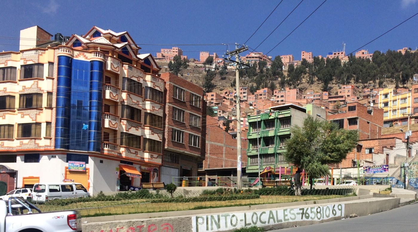 In 2006, El Alto, the satellite city of La Paz, Bolivia, was referred to in Mike Davis’ Planet of Slums as the 18th largest ‘Megaslum’ in the world . Today, houses on the city’s main thoroughfare, Avenida 6 de Marzo, are valued at up to $800,000 US – and these prices have risen steeply over the last decade. Such is their value, that the predominantly indigenous, Aymara-speaking inhabitants of the ‘slum’ area of El Alto, and the informal areas in the North of La Paz, are buying up property in the salubrious, and predominantly white, Zona Sur in the south of the city. To indicate the reversal of the classed, raced way that such dynamics of displacement are generally thought to take place, one La Paz based newspaper controversially referred to the increasing presence of El Alto wealth in the Zona Sur as a ‘colonisation’ .